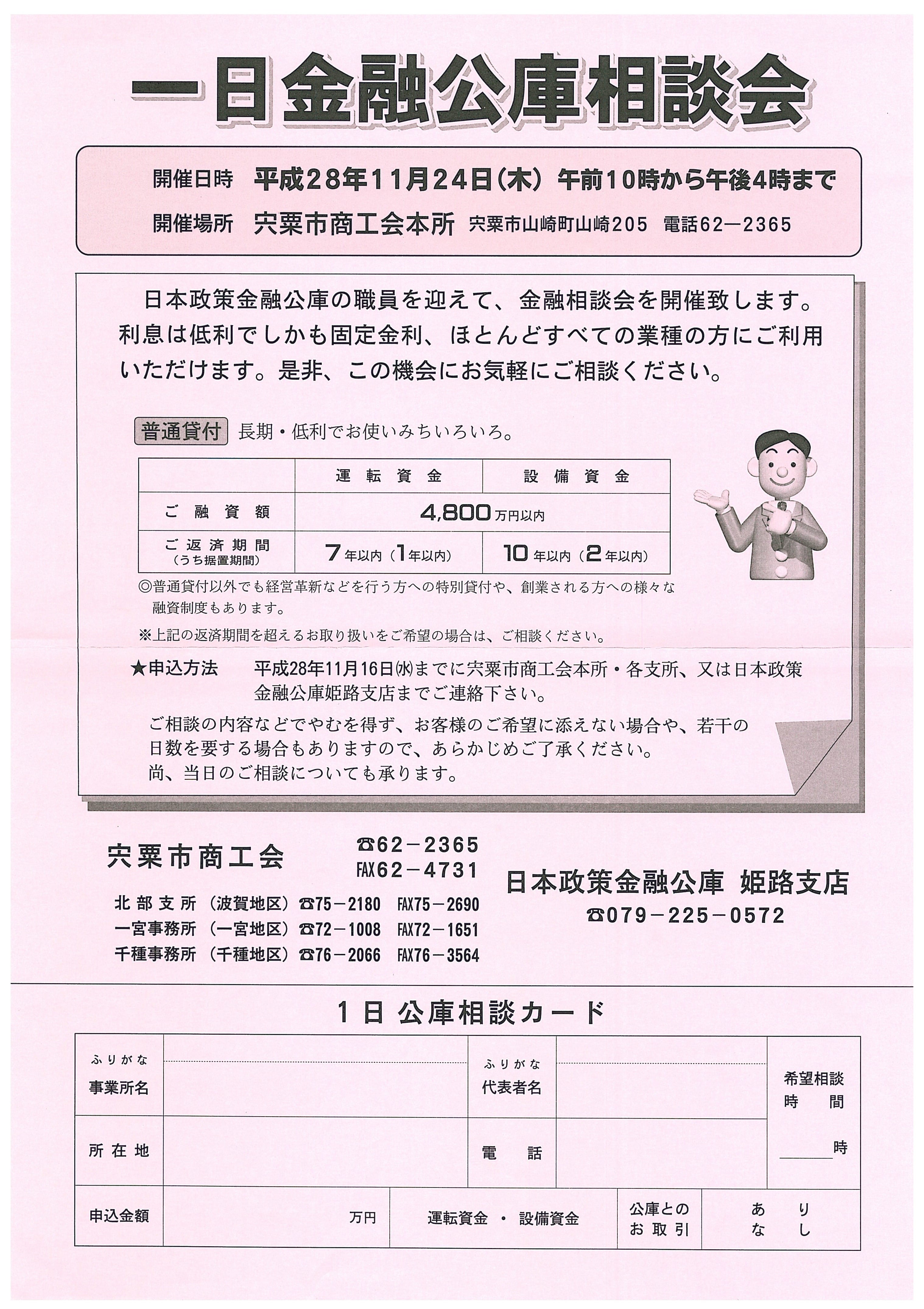日本政策金融公庫の職員を迎えて、金融相談会を開催致します。