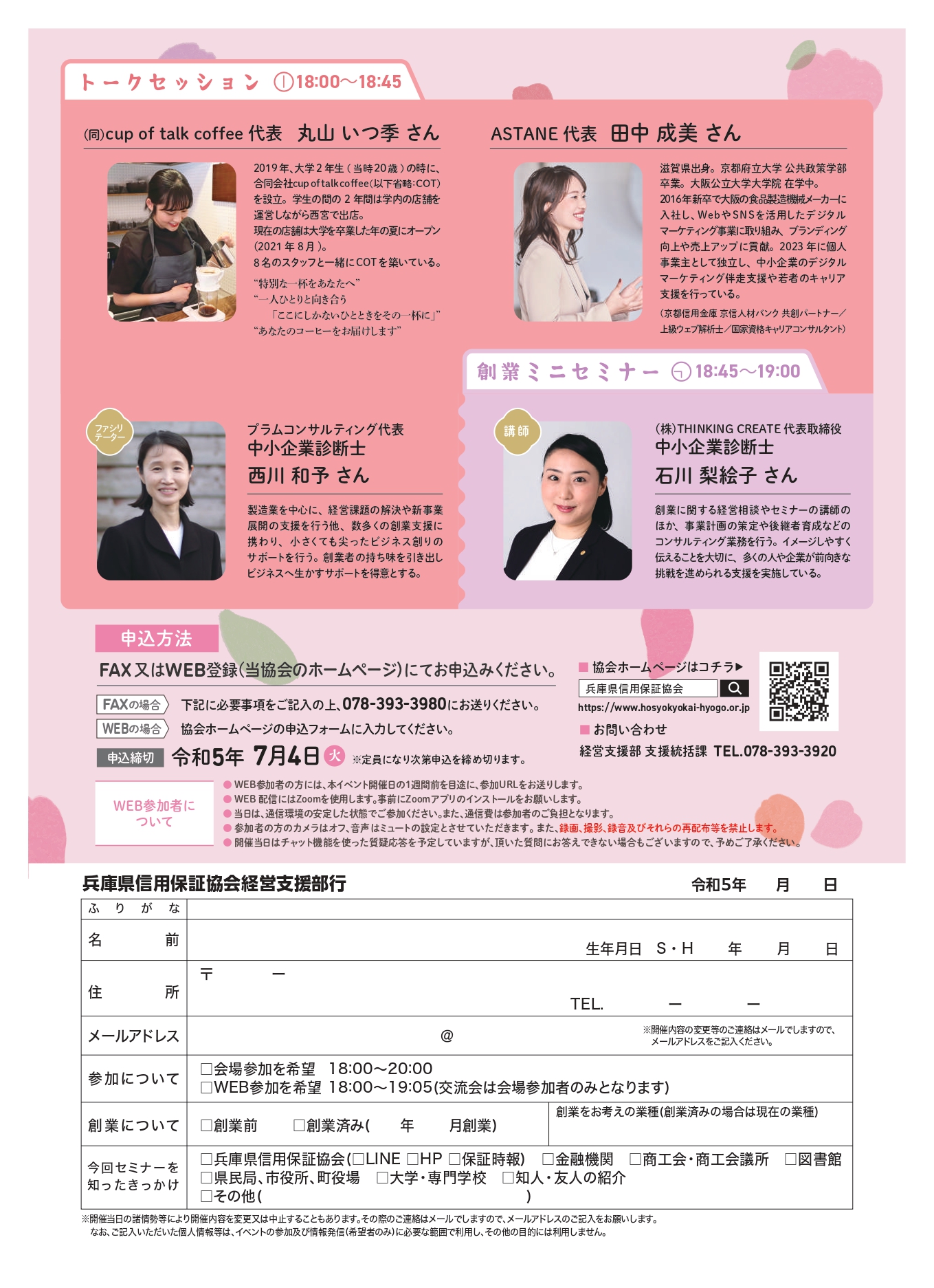 兵庫県信用保証協会|協会からのお知らせ > 女性創業セミナー2023 (hosyokyokai-hyogo.or.jp) セミナーチラシはこちら→