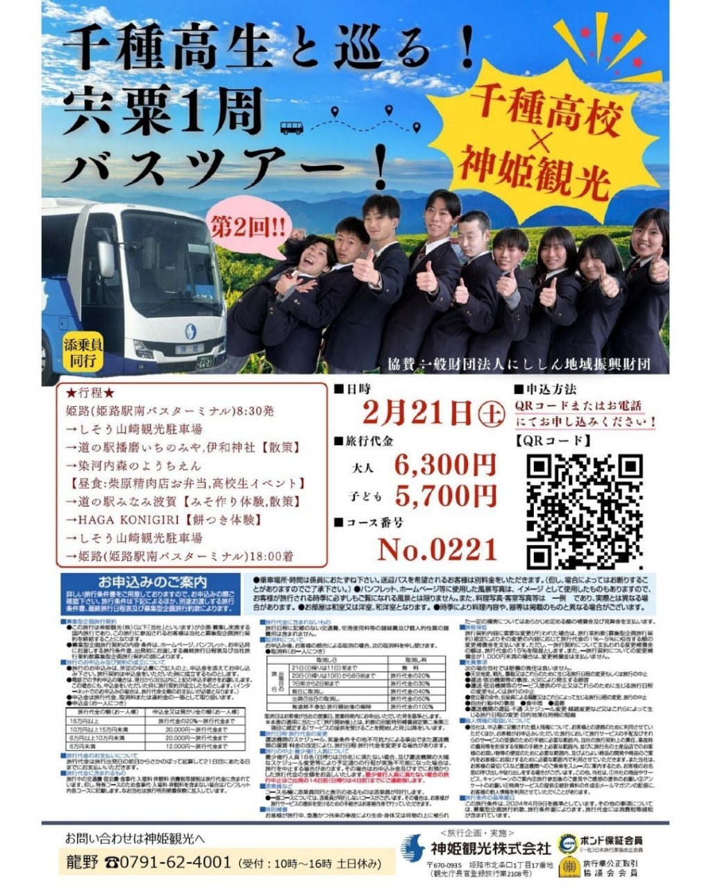 予約方法:神姫観光(0791-62-4001)へ電話もしくはQRコード